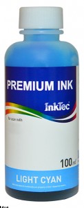 Чернила InkTec Premium Ink Light Cyan емкость 100 мл для использования в принтерах HP картридж: 02, (c8776), 363, (c8776), 177, (c8776), 801, (c8776). Цвет синий.