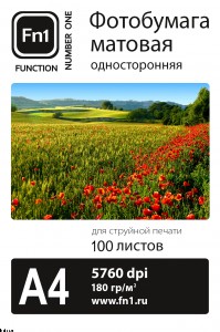 Фотобумага матовая односторонняя 180гр/м, А4 100л, Fn1