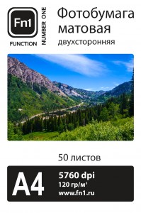 Фотобумага матовая двусторонняя для струйной печати 120гр/м, А4 50л, Fn1
