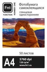 Фотобумага самоклеящаяся глянцевая односторонняя для струйной печати 120гр/м, А4 50л, Fn1