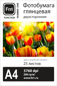 Фотобумага глянцевая двусторонняя для струйной печати 200гр/м, А4 25л, Fn1